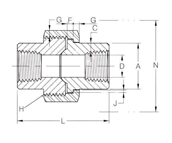 | ThuaidhPS | A | C | D (max) | D (min) | F | G | H (Thrds/In) | J (min) | L | N |
